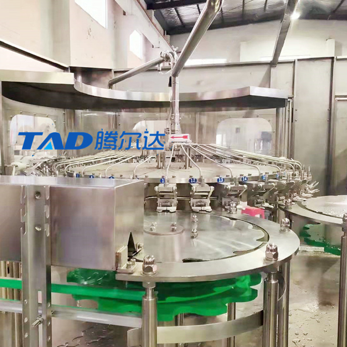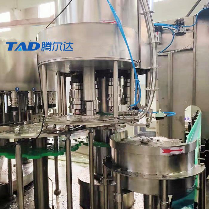 本机主要用于热饮料的冲洗灌装封口作业。本机集无菌水冲洗、高温果汁饮料灌装、旋盖三功能集合在一个机体上,全过程实现PLC控制自动化,适用于聚酯瓶、塑料瓶灌装果汁、矿泉水、纯净水。本机带有温控装置。各部分的适用瓶型调整采用更换拨轮实现(瓶盖一致),轻松自如,简便快捷。灌装方式采用了新型的微压回流灌装,使灌装速度更快更稳定,所以与同规格的机器相比本机的产量更高,效益更大。本机采用了较好的日本三菱可编程控制器(PLC)控制机器的自动运行,进瓶链道采用变风送进瓶,与主机变频器相互配合使进瓶运行更稳定可靠。光电检测各部件的运行状况,所以自动化程度高,操作简便。是饮料生产厂家理想的选择设备。